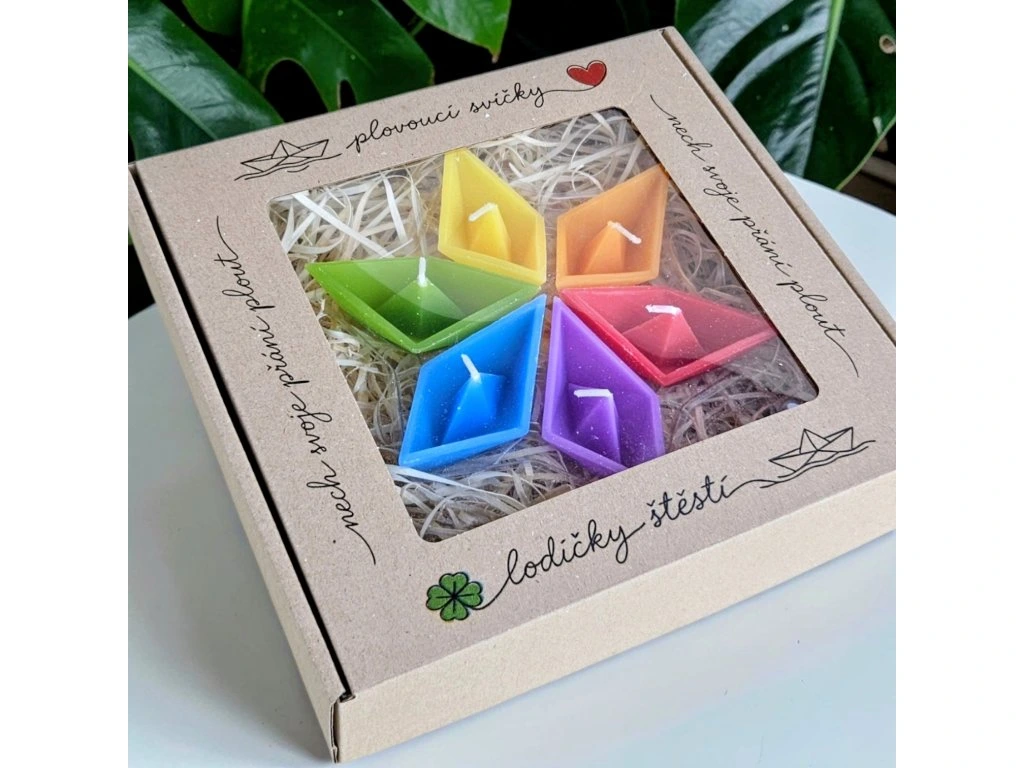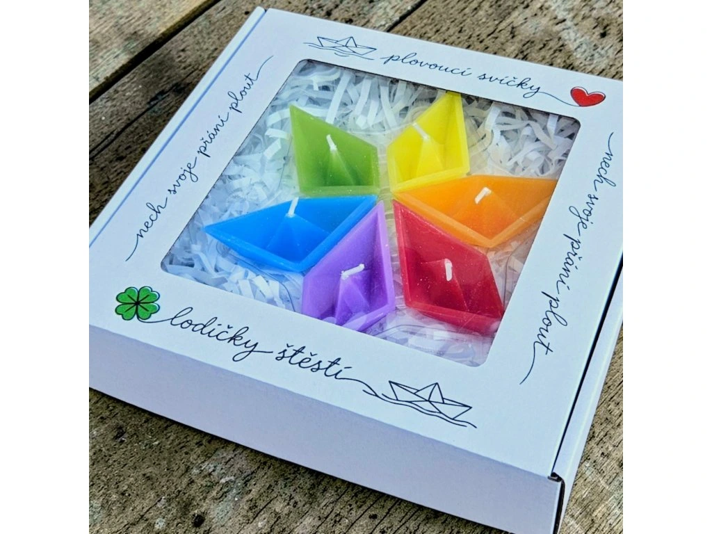 Reklamní plovoucí svíčky Lodičky štěstí v dárkové krabičce jsou originální firemní dárek s možností vlastního nápisu nebo loga. Sada 6 kusů může být sestavena v libovolných barevných variantách tak, aby ladila s barvami vaší značky. Elegantní a zapamatovatelný reklamní předmět, který zaujme na první pohled.