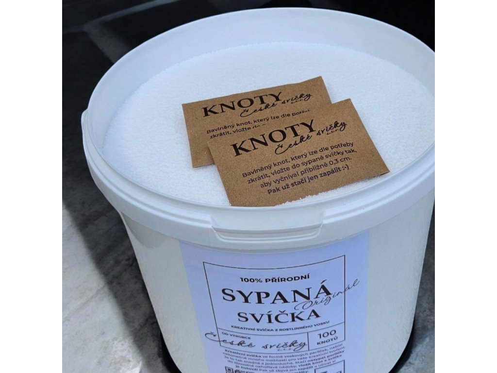 Originální přírodní SYPANÁ SVÍČKA ve formě voskových perliček, nabízí nekonečně mnoho možností pro vaše kreativní tvoření. Balení obsahuje 3kg perličkového přírodního vosku a 100 bavlněných knotů o délce 6cm.